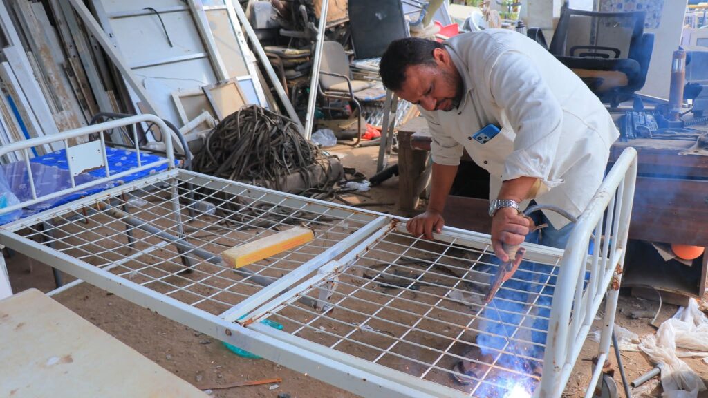 وقد برزت الورشة الفنية كفضاء إنتاج وإبداع داخل الهيئة، إذ تتولى صيانة الأبواب والشبابيك المصنوعة من الألمنيوم، وإعادة تأهيل الأسرة الحديدية عبر مراحل دقيقة تشمل الصنفرة والطلاء وتركيب العجلات، إلى جانب تصنيع وتجهيز المستلزمات مثل علاقات السوائل والستائر والهناجر. كما تقوم بأعمال اللحام الدقيقة، وصيانة المعدات واستبدال أجزائها التالفة، فضلاً عن تركيب المظلات، وتصنيع كراسي الانتظار للمرضى وذويهم، وإعداد الدواليب المكتبية وصيانة الكراسي الدوارة.