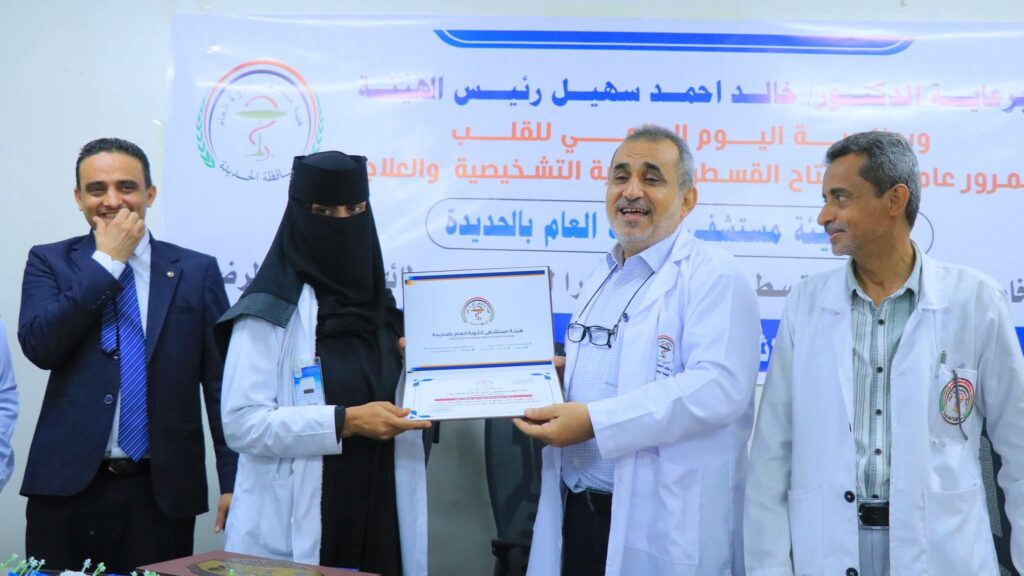 احتفت هيئة مستشفى الثورة العام بالحديدة، صباح اليوم الاثنين، باليوم العالمي للقلب، متزامناً مع مرور عام على افتتاح وحدة القسطرة القلبية التشخيصية والعلاجية، وذلك من خلال فعالية تكريمية جرى خلالها تكريم الكادر الطبي والتمريضي وفريق التخدير العاملين في الوحدة، تقديراً لعطائهم المخلص وجهودهم المتميزة في خدمة المرضى والتخفيف من معاناتهم.